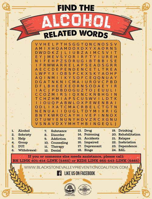 Download a copy of our Alcohol Word Find activity here. Enjoy and remember.....let's take care of ourselves!