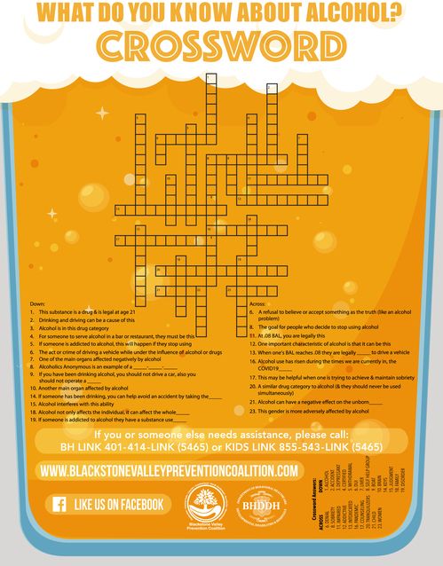 Test your knowledge about alcohol....download our Alcohol Crossword Puzzle here: