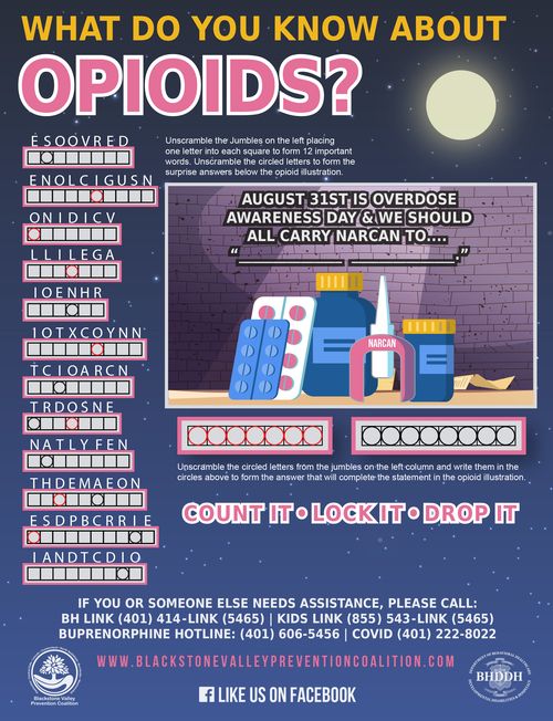 Test your knowledge about opioids........download our Opioid Jumble and answer key: