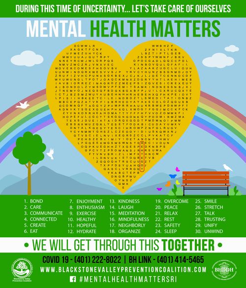 Download a copy of Mental Health Matters MAZE activity here. Enjoy and remember.....let's take care of ourselves!