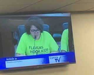 Jasmine Rios testifying before the RI Senate Finance Subcommittee.