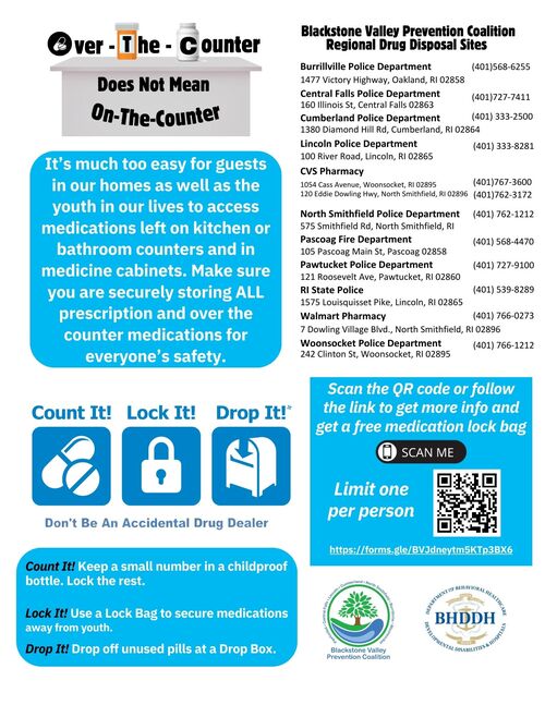 For more information about how to receive a prescription lock bag for safe storage of medications please call 401-859-2500 Ext. 1